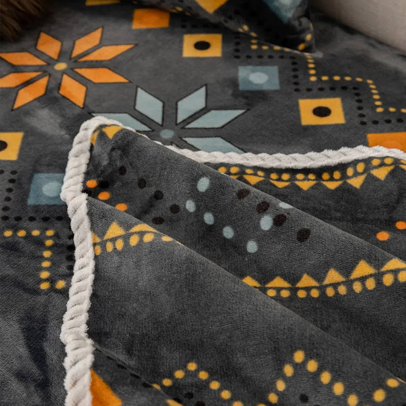 Le motif bohème s’harmonise aisément avec des coussins unis (bouclette, lin lavé) et des matières naturelles (bois, jute, rotin). Choisissez une teinte contrastée pour créer un point focal, ou une couleur ton-sur-ton pour un esprit minimaliste. La bordure soignée et le tombé net donnent un rendu « salon d’hôtel » sans effort.