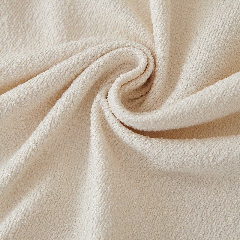 Quatre teintes sobres et élégantes qui s’accordent à tous les univers déco : Ivoire, Taupe, Gris clair et Gris foncé. Le velours teddy capte la lumière et crée un relief discret, chaleureux sans être clinquant. Associez-le à des coussins en maille ou en lin pour un contraste de matières harmonieux.