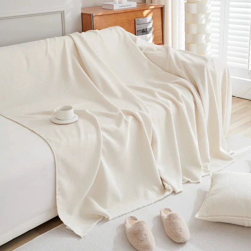 Un plaid jeté de canapé grande taille en velours teddy : imperméable, déperlant, anti-griffes/anti-rayures, ultra résistant, proposé en 180 cm ou 230 cm de largeur et jusqu’à 420 cm de longueur, disponible en Ivoire, Taupe, Gris clair et Gris foncé. Une solution élégante et pratique pour protéger, rénover et réchauffer votre intérieur en toute simplicité.